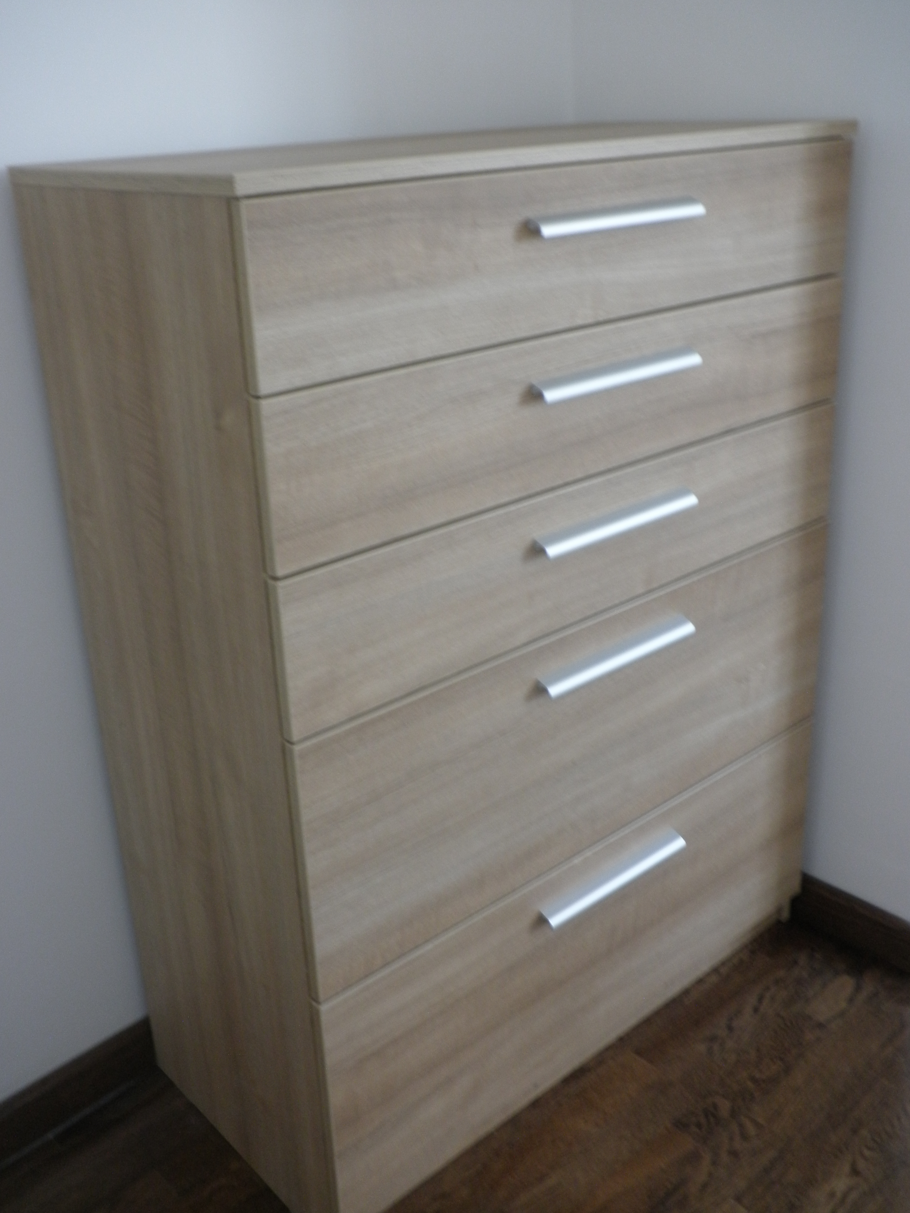Kombinacija plitkih i dubokih ladica čini komodu funkcionalnim komadom garderobnog namještaja.