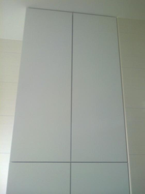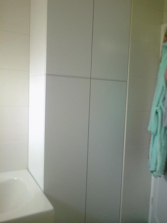 Ugradbeni ormar po mjeri u kupaonici od vlagootpornog iverala odlično je mjesto za spremanje prljavog rublja, sredstava za čišćenje i svega potrebnog u kupaonici, a ujedno je sakrio bojler. Tako je kupaonica elegantna i bez nepoželjnih detalja.