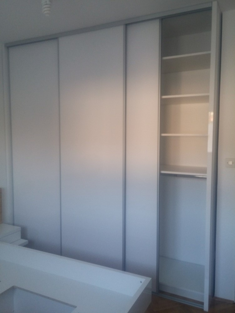 Ugradbeni ormar po mjeri u spavaćoj sobi s kliznim vratima acryl bijeli visoki sjaj