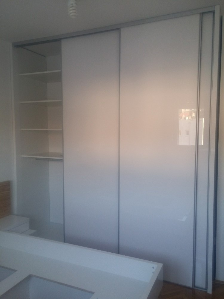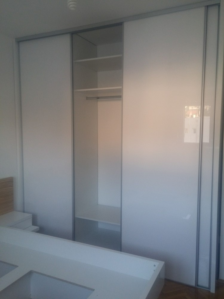Ugradbeni ormar u hodniku - klizna vrata bijelo staklo