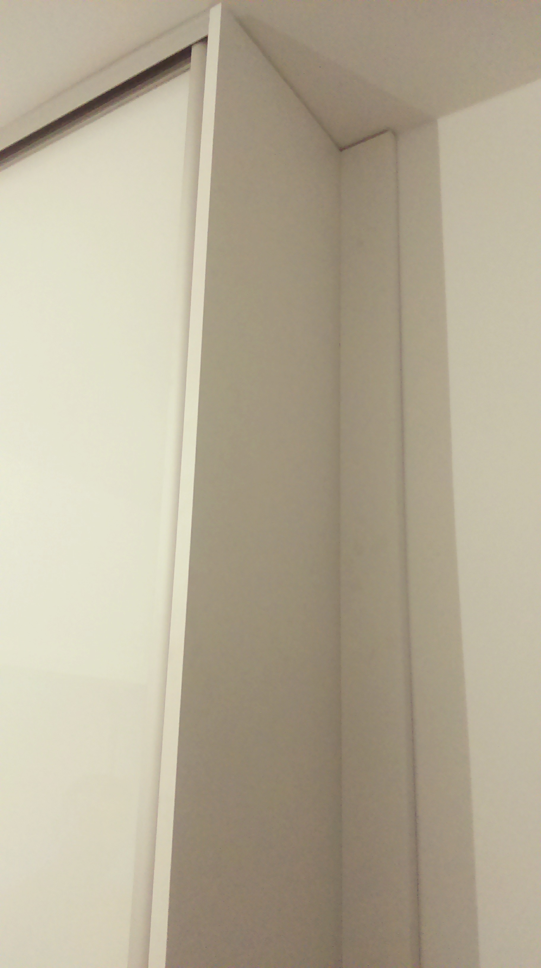 Neravni zidovi nisu rijetkost, stoga je često puta potrebno na neki način sakriti šupljine koje se pojavljuju prilikom ugradnje namještaja. Kako je ormar u ovom slučaju dublji od same niše postavili smo masku uz bočnu stranicu ormara i time prekrili nedostatak.