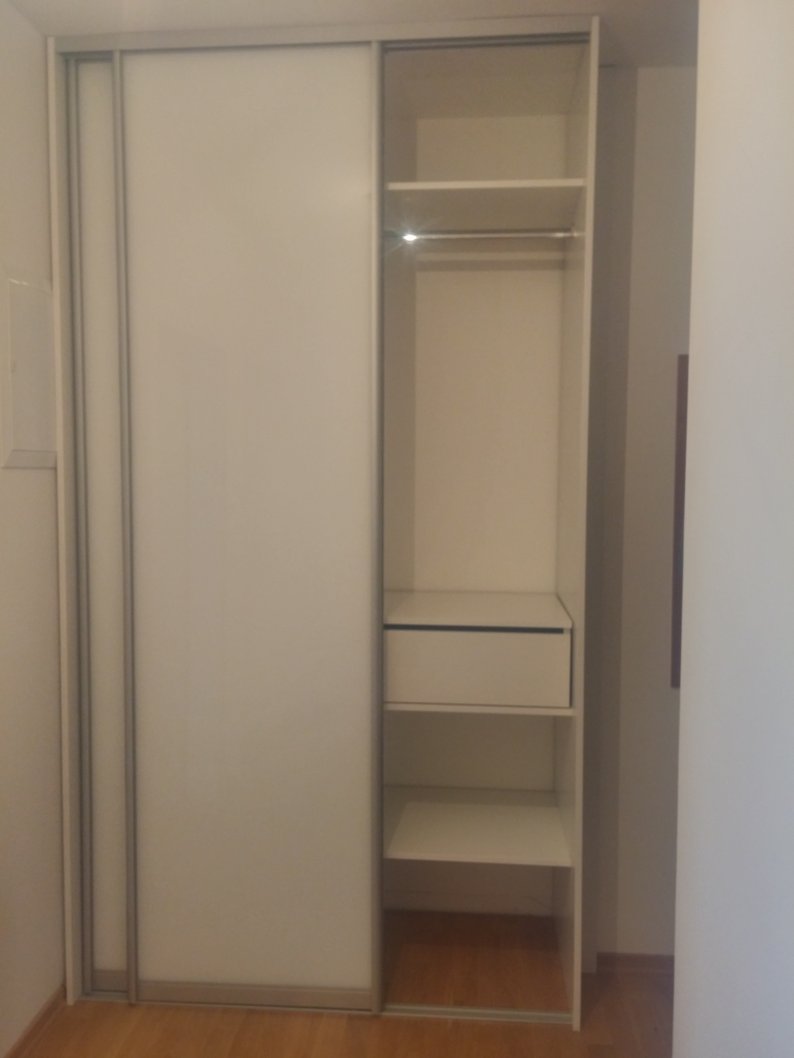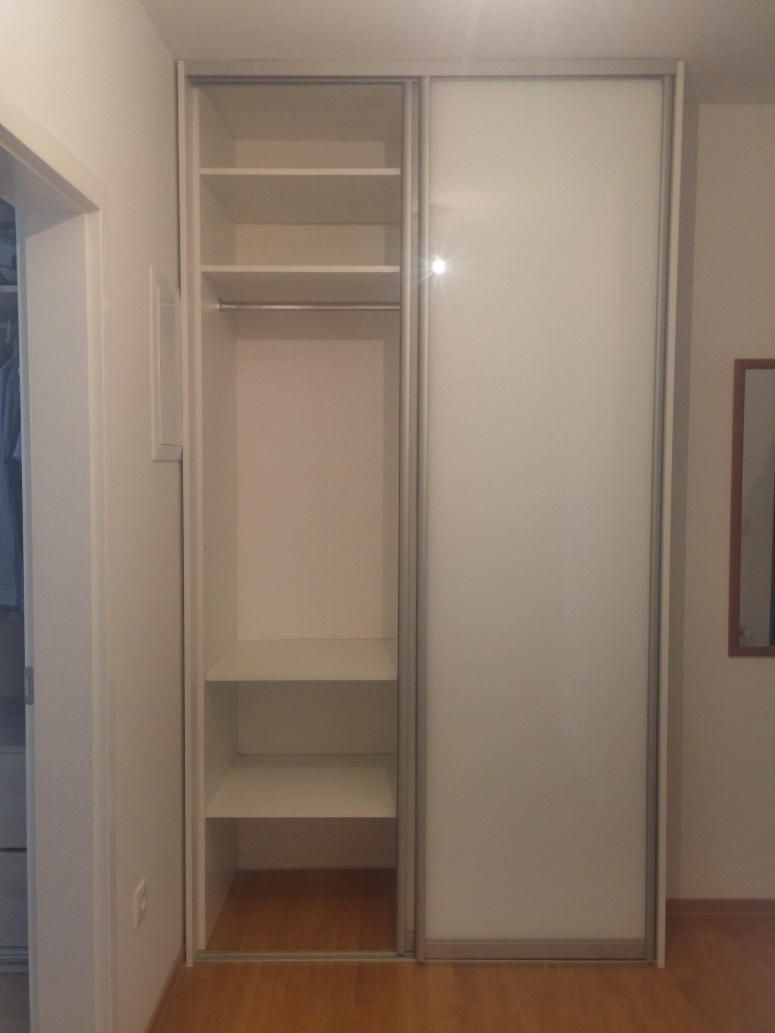 Ugradbeni ormar u hodniku - klizna vrata bijelo staklo