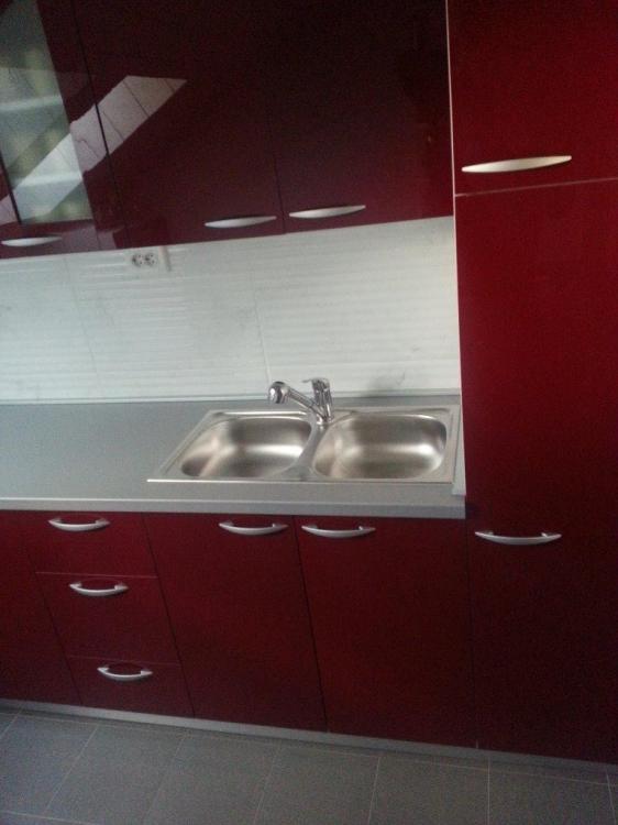 Kuhinja "L" oblika u potkrovlju sa frontama kuhinjskih elemenata bordo acryl visoki sjaj. Radna ploča kao i ručkice su u boji aluminija. Kuhinjski elementi izrađeni po mjeri prema prostoru i željama kupca su: element za hladnjak, element za sudoper, element sa tri ladice s metabox vodilicama, ugradbena perilica za suđe, kutni element u koji je ugrađena okretna košara pola kruga, dva elementa sa policama i jedan višlji element koji je podijeljen na tri dijela (dva sa policama i jedan sa izvlačnom košarom). Štednjak i napa su postavljeni na lijevom zidu prema postojećim instalacijama. Gornji kuhinjski elementi su izrađeni po mjeri prema krovnoj kosini, od kojih jedan ima vrata sa okvirom od bordo acryla i staklenu ukladu. Bordo acryl visoki sjaj reflektira svjetlo, te prema svjetlu i sjeni u prostoru daje različite tonove crvene boje što kuhinju ćini zanimljivom i ekskluzivnijom.